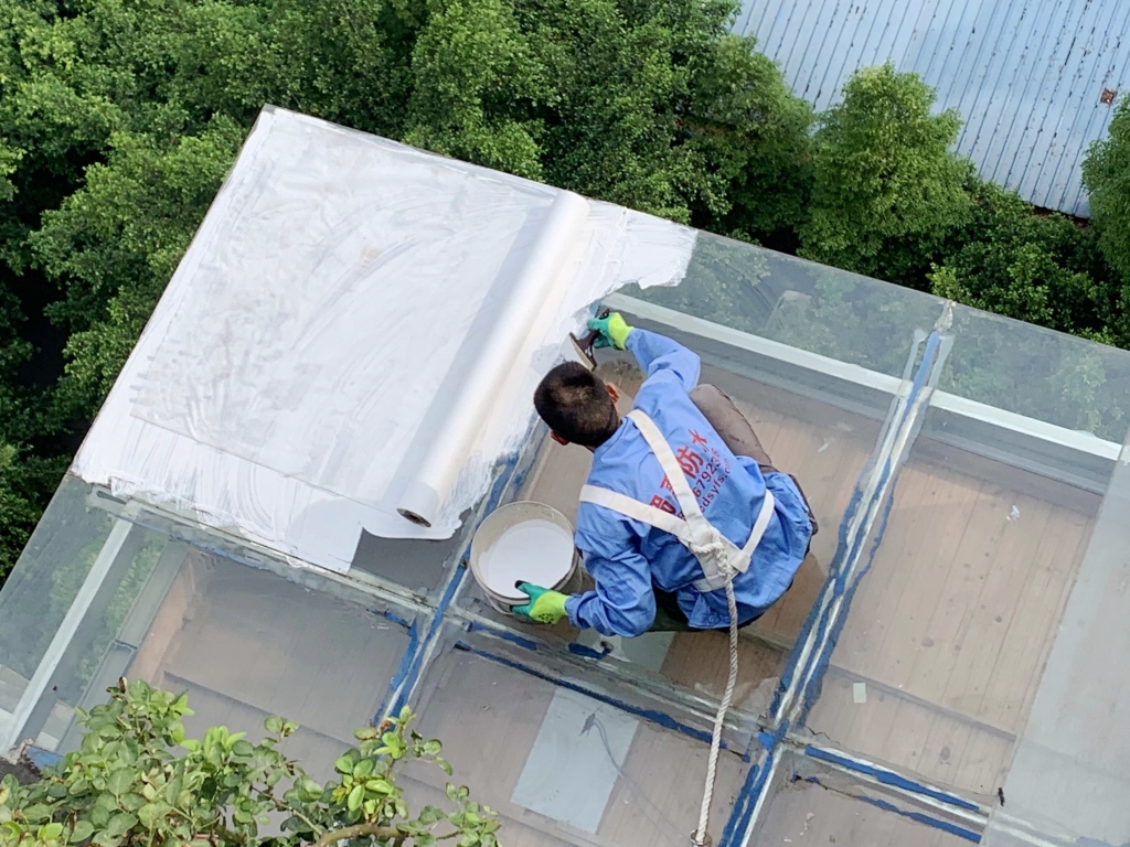 玻璃頂屋面漏雨的情況比較常見,常規(guī)的方法是打密封膠進(jìn)行處理,但是玻璃頂在夏季太陽暴曬下熱脹、夜間收縮變形,這樣反復(fù)變形時間久了,由于玻璃之間縫隙較窄,結(jié)構(gòu)膠就出現(xiàn)了開裂的情況,這就是為什么玻璃接縫過幾年漏雨之后,反復(fù)打膠依然無法很好的解決漏雨的問題,我公司采用的是SYR金屬屋面專用防水涂料配合專用縫織聚酯布進(jìn)行一布三涂的方式進(jìn)行施工,SYR金屬屋面專用防水涂料外露型的柔性防水涂料可以裸露使用并且具有一定的柔性神所率,所以用來處理玻璃接縫之后防水效果很好,并且耐久性也比較好。