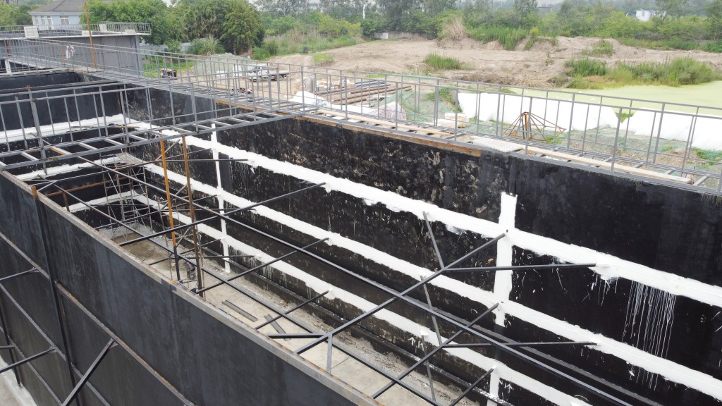 我公司承接的新津工業污水處理廠提標改造項目水箱防水工程,現場的情況是升級改造修建了兩個鋼結構的水箱,由于是鋼結構的,焊接處縫隙較多,容易出現漏水的問題,處理漏水的方式比較麻煩,普通的材料在鋼結構鋼板上粘貼不牢固,并且是污水處理池,污水具有一定的酸堿腐蝕性,所以在材料的選擇上,要考慮到與鋼板的粘結力,耐酸堿腐蝕性等特點,甲方經過找多家公司根據多種材料現場去做樣品后,實際情況檢測分析,最終確定選擇我公司制定的方案,采用蜀禹SYR金屬防水系統針對水箱防水處理,處理后效果很好。