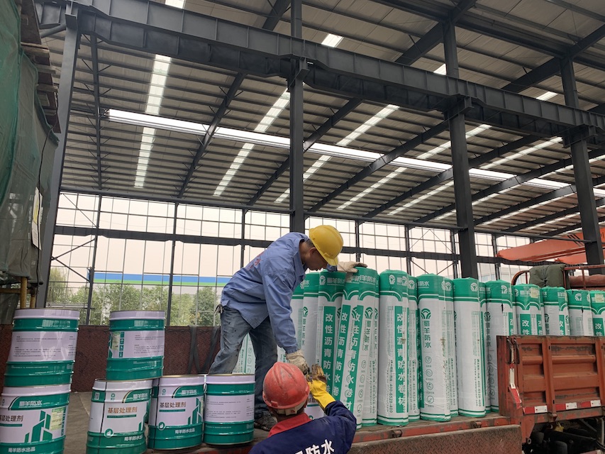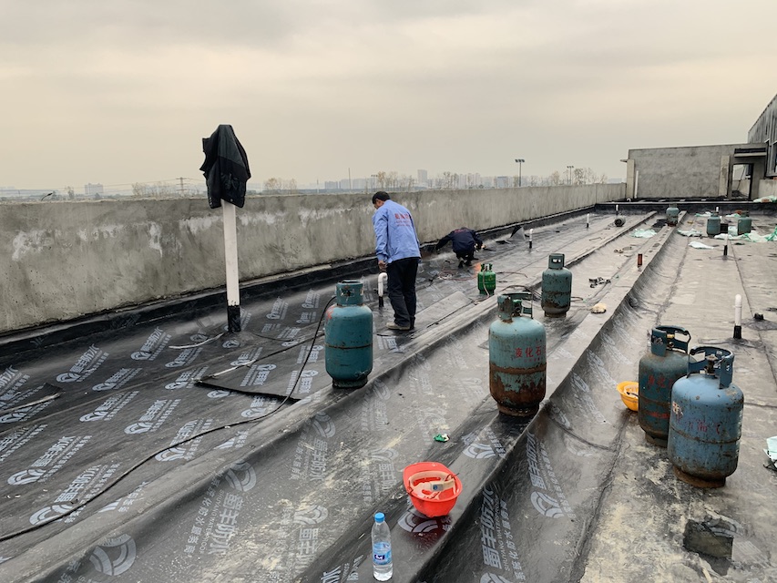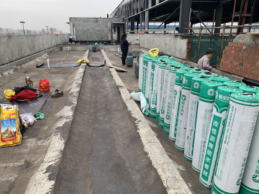 我公司承接的成都市郫都區康強三路的立航科技工業園的5#生產車間和高壓配電室的屋頂防水工程,按照設計圖紙要求,采用蜀羊的SBS改性瀝青防水卷材施工雙層防水卷材。