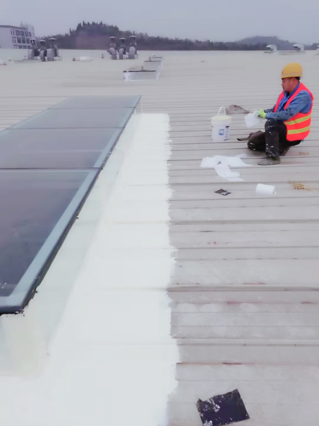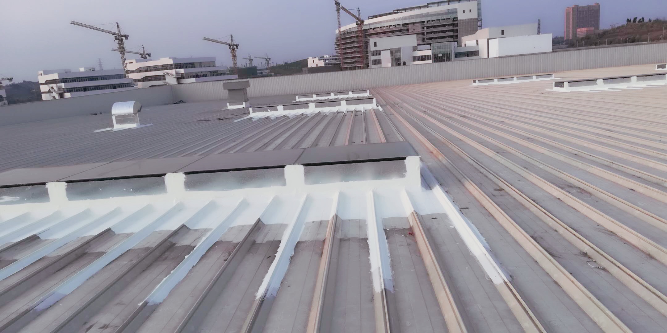 我公司承接的中國牙谷愛齊口腔醫療設備生產基地一期廠房金屬屋面防水工程,工程地位于四川省資陽市高新區,采用本公司的SYR金屬屋面專用防水涂料配合專用的縫織聚酯布,處理效果好。