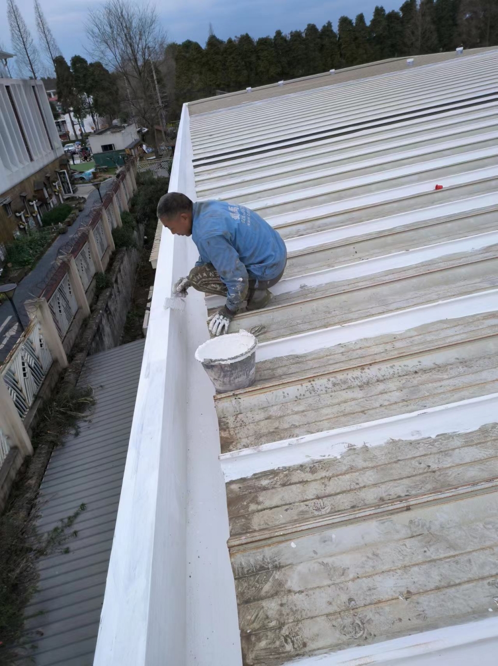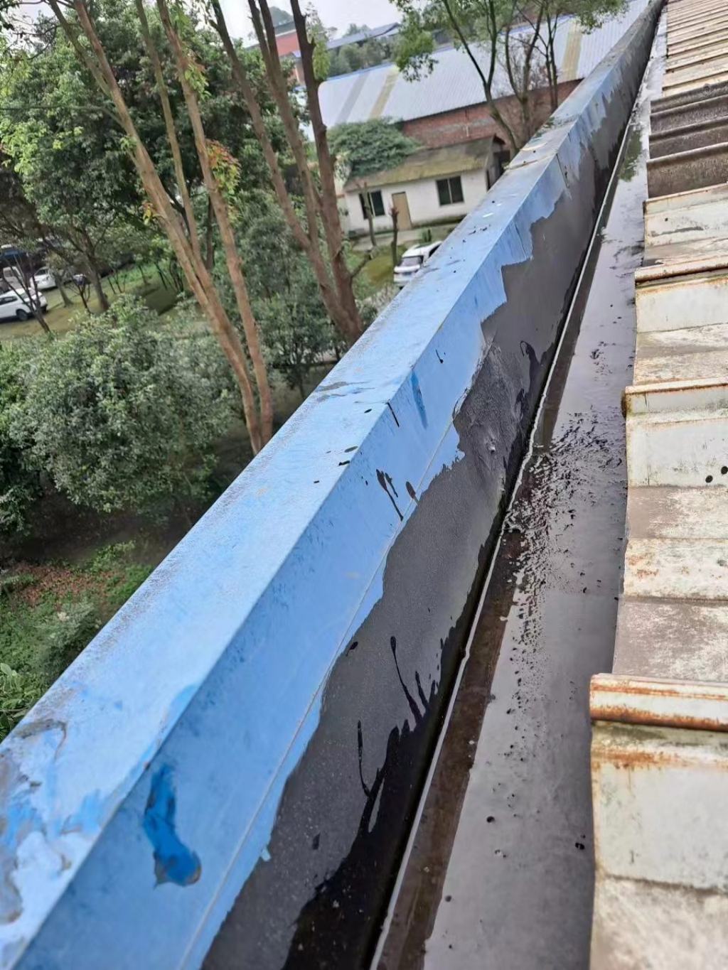 在天溝部位的處理上,成都蜀禹建筑防水工程有限責(zé)任公司同樣采用了SYR金屬屋面專用防水涂料進(jìn)行滿涂刷。對于天溝內(nèi)銹蝕嚴(yán)重的地方,公司首先采用彩鋼板進(jìn)行修補(bǔ),然后在生銹的地方涂刷免除銹納米固銹劑進(jìn)行基面固銹處理。這一步驟不僅有效去除了銹蝕,還為后續(xù)的防水防腐處理奠定了堅(jiān)實(shí)的基礎(chǔ)。