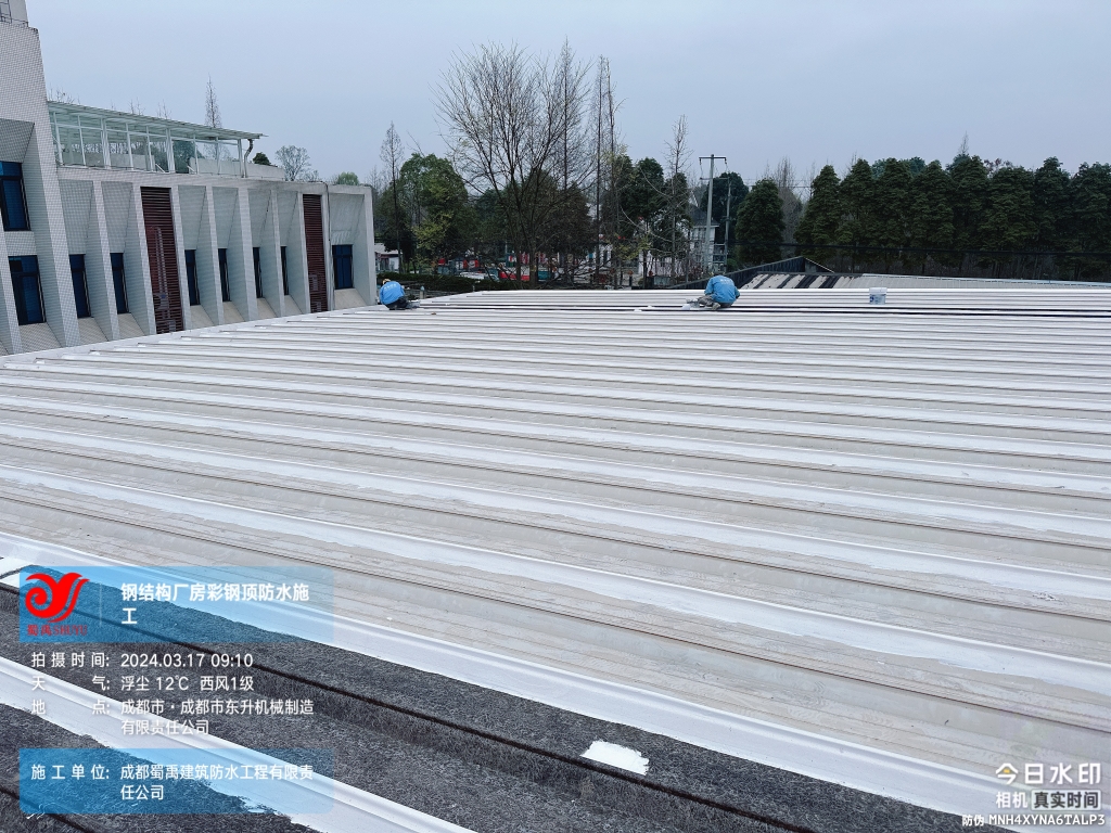 成都市東升機(jī)械制造有限責(zé)任公司廠房彩鋼頂及天溝防水補(bǔ)漏工程案例介紹