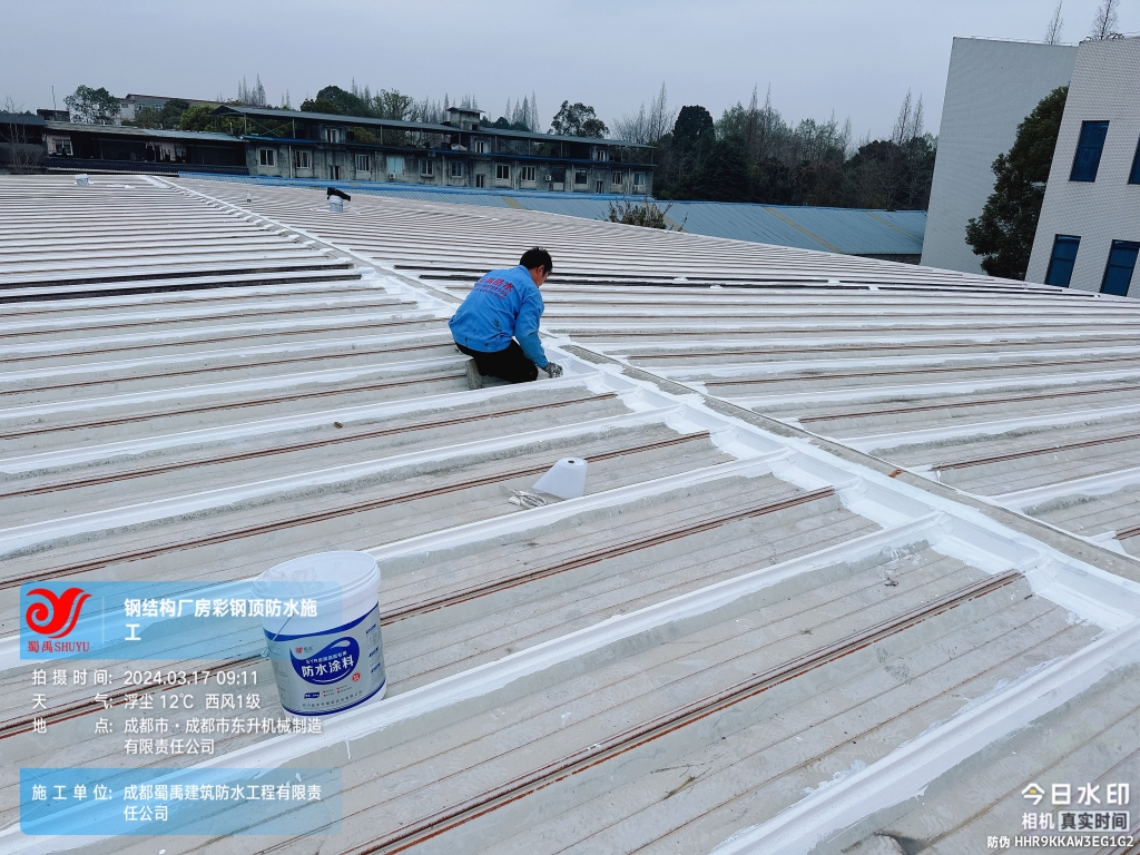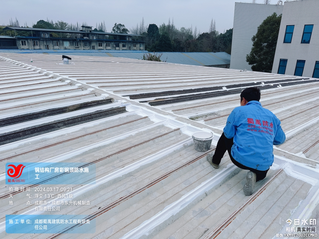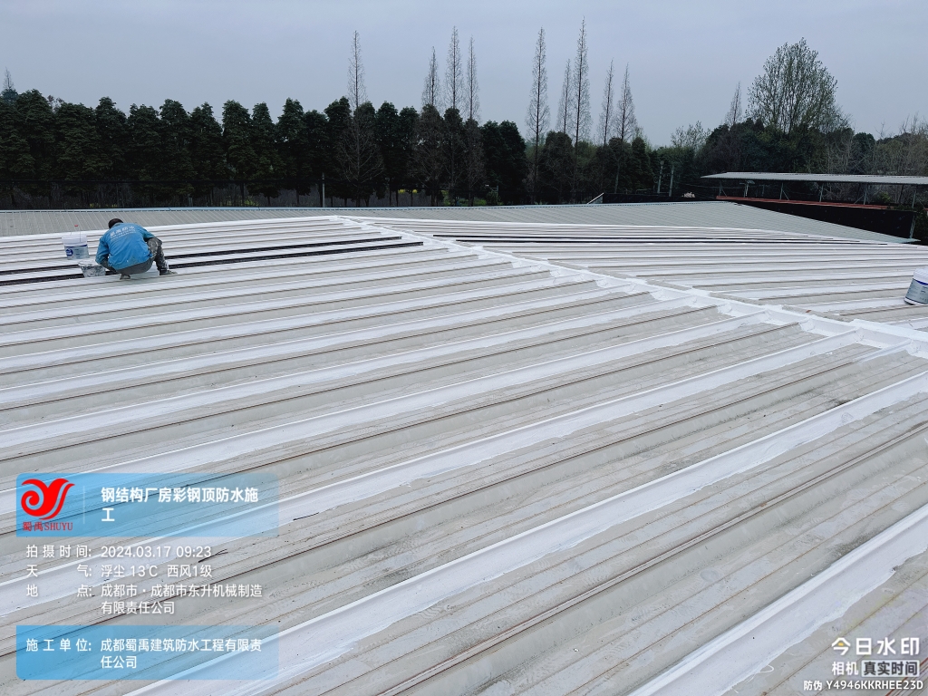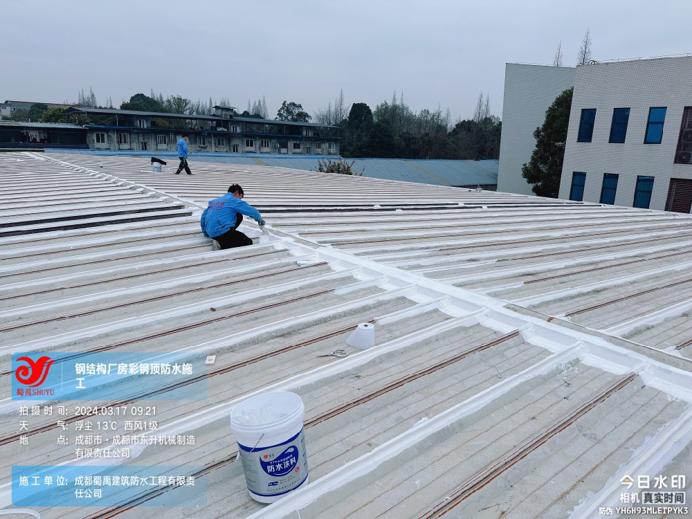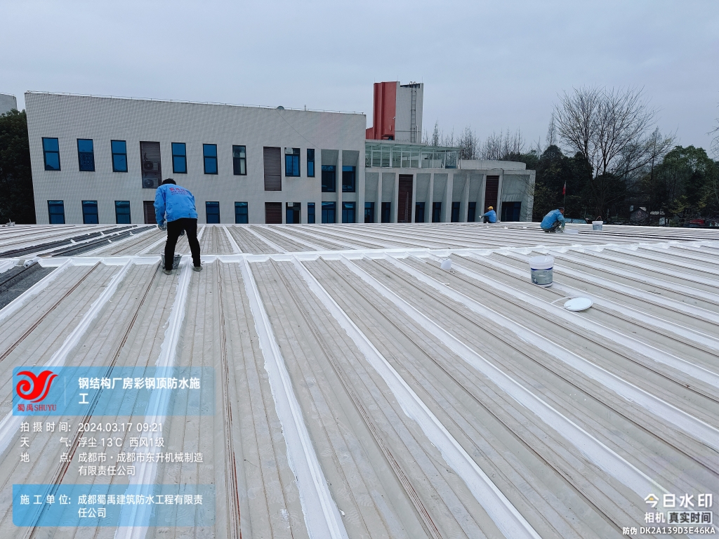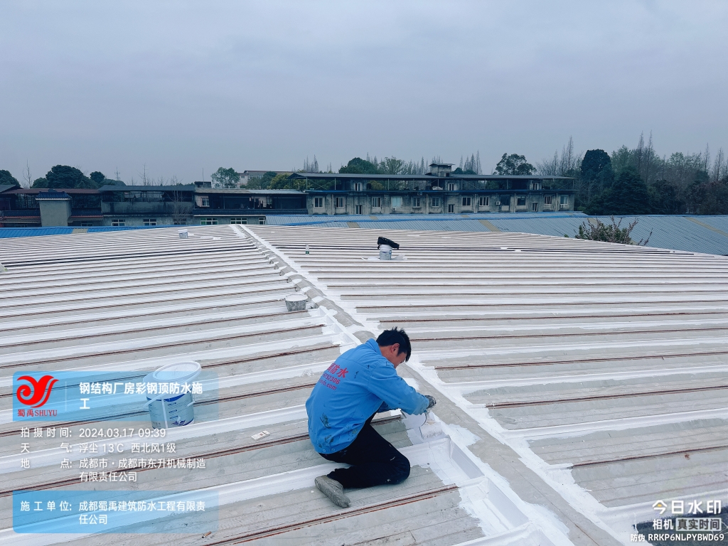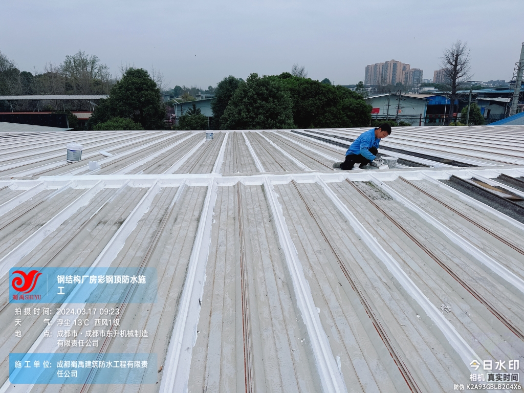 近日,成都蜀禹建筑防水工程有限責(zé)任公司成功完成了成都市東升機(jī)械制造有限責(zé)任公司位于溫江區(qū)廠房的彩鋼頂及天溝防水補(bǔ)漏工程。此次工程旨在解決廠區(qū)內(nèi)廠房彩鋼頂屋頂表面的彩鋼瓦接縫、固定螺釘、天溝等部位的防水問題,確保廠房的防水性能得到有效提升。