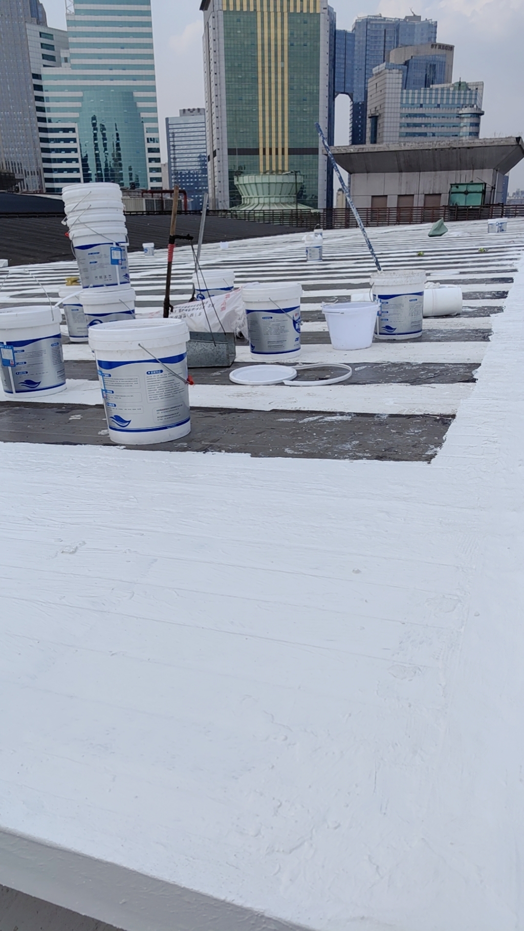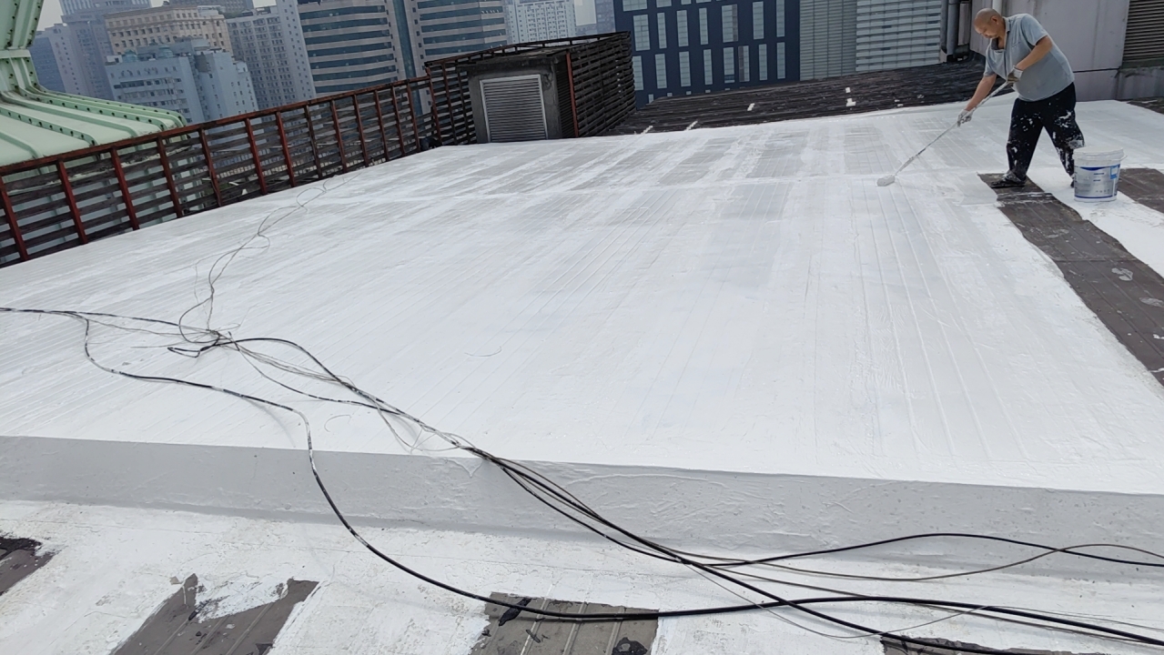 在完成關鍵部位的防水處理后,公司對整個彩鋼頂面進行了滿滾涂兩遍SYR金屬屋面專用防水涂料的操作。這一步驟不僅進一步加強了彩鋼頂的防水性能,還提升了其防腐能力,有效延長了彩鋼頂的使用壽命。