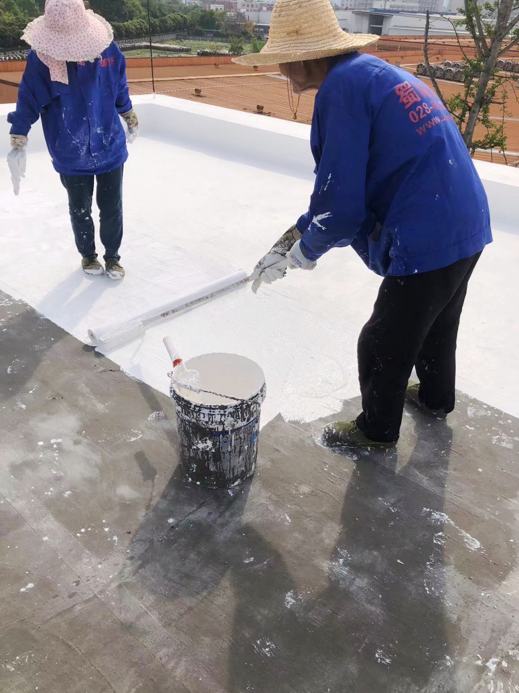 隨后,我們按照專業(yè)的施工流程,首先在基層表面涂刷聚合物防水涂料,并精心鋪貼專用縫織聚酯布。這一步驟不僅增強(qiáng)了防水層的附著力和耐久性,同時(shí)也為后續(xù)的涂層施工提供了良好的基底。接著,我們?cè)俅瓮克⒕酆衔锼喾浪苛希_保涂層均勻且牢固。