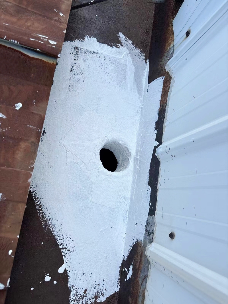 加固與防護:對于天溝旁邊未固定好的墻瓦,采用彩鋼螺絲進行了加固處理,增強了結構的穩定性。同時,在天溝內底部及兩側面滿涂刷納米固銹劑,有效防止了銹蝕的進一步擴展。