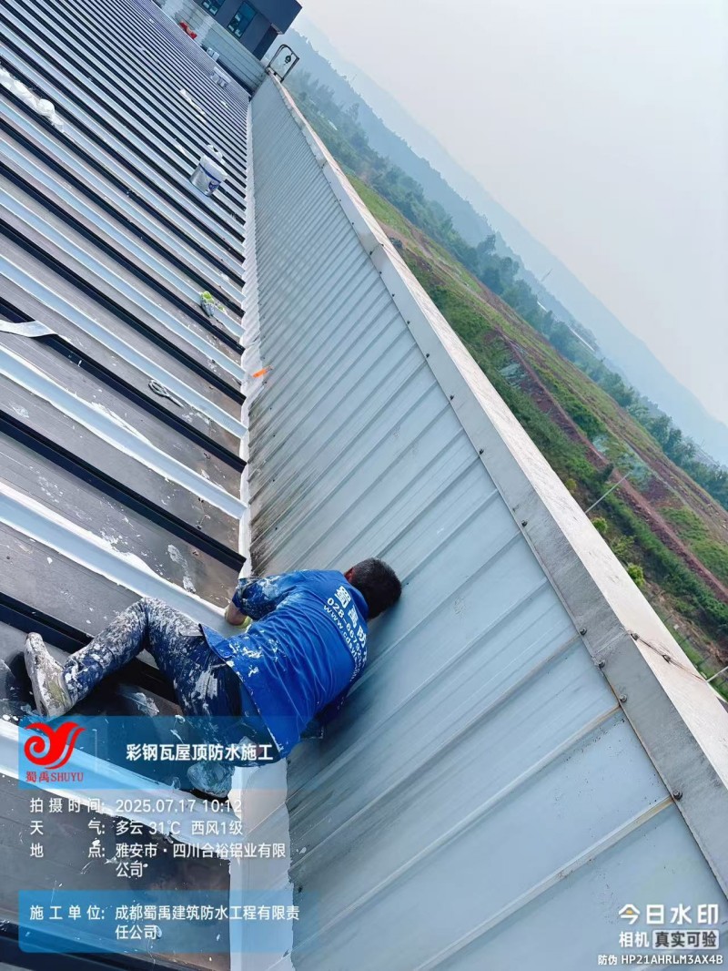 雅安誠(chéng)裕金屬3號(hào)廠房屋頂防水補(bǔ)漏工程案例:蜀禹SYR金屬屋面無(wú)縫防水系統(tǒng)破解漏水難題